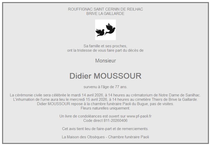 Crématorium de Notre Dame de Sanilhac le mardi 14 avril à 14 heures 30