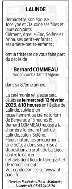 Décédé à Lalinde (24150, France) le jeudi 6 février 2025 à l'âge de 86 ans