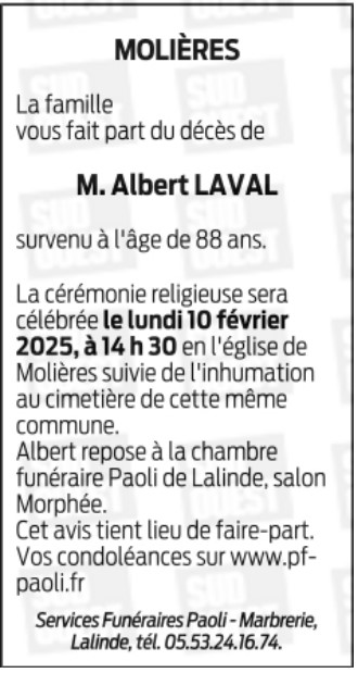 Né à Molières (24480, France) le mercredi 5 août 1936